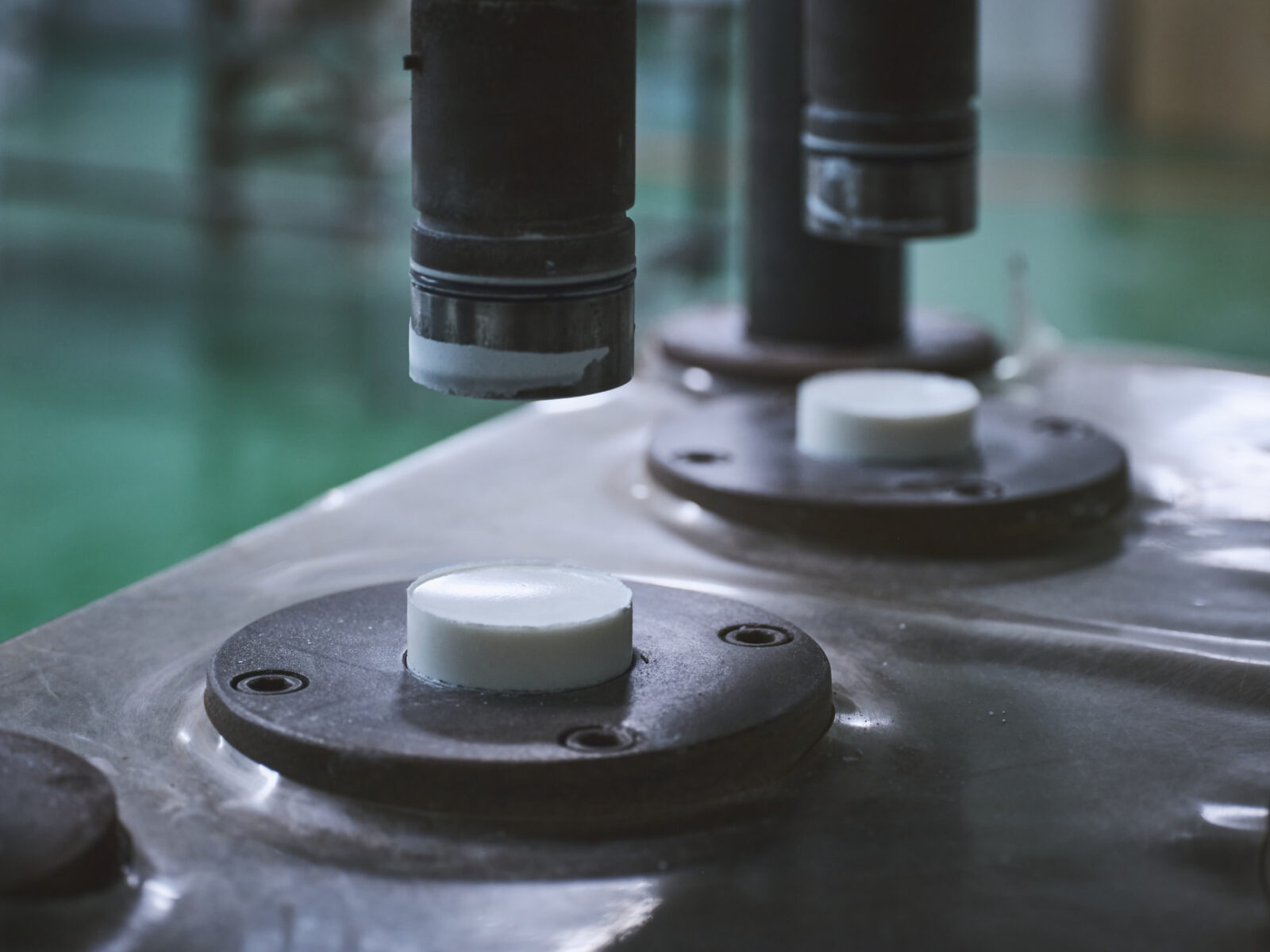一般的な石鹸とは異なり、ロイスの塩石鹸「お塩のめぐみ」および「equals」は、乾燥した原料を粉砕して90tという超高圧で固めるドライプロセスで製造しており、製造時に熱も発生しないため、工場からの排水や熱・CO2の排出もなく、環境負荷も低くなっています。また、水分がほとんど含まれず、塩が防腐効果を発揮するので、防腐剤などの化学合成成分が必要ありません。