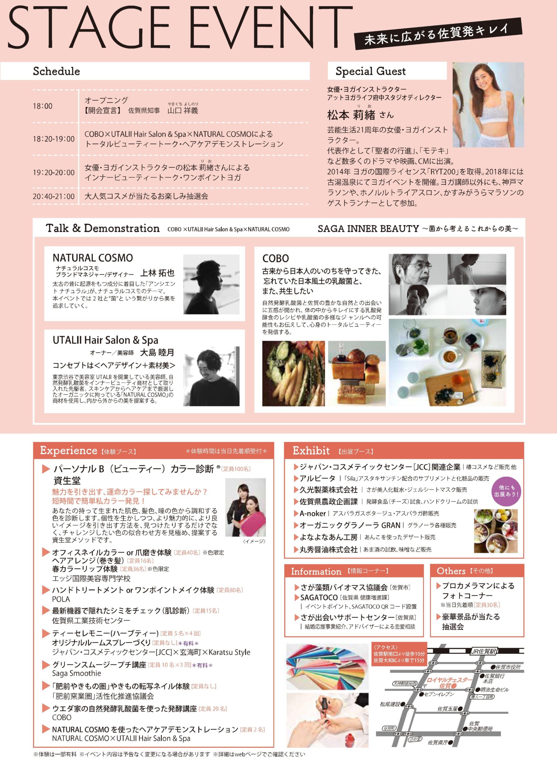 この度、2019年のイベント第2弾として、佐賀市にて美と健康を体感できるイベント「SAGAn BEAUTY WEEKEND」を開催します。