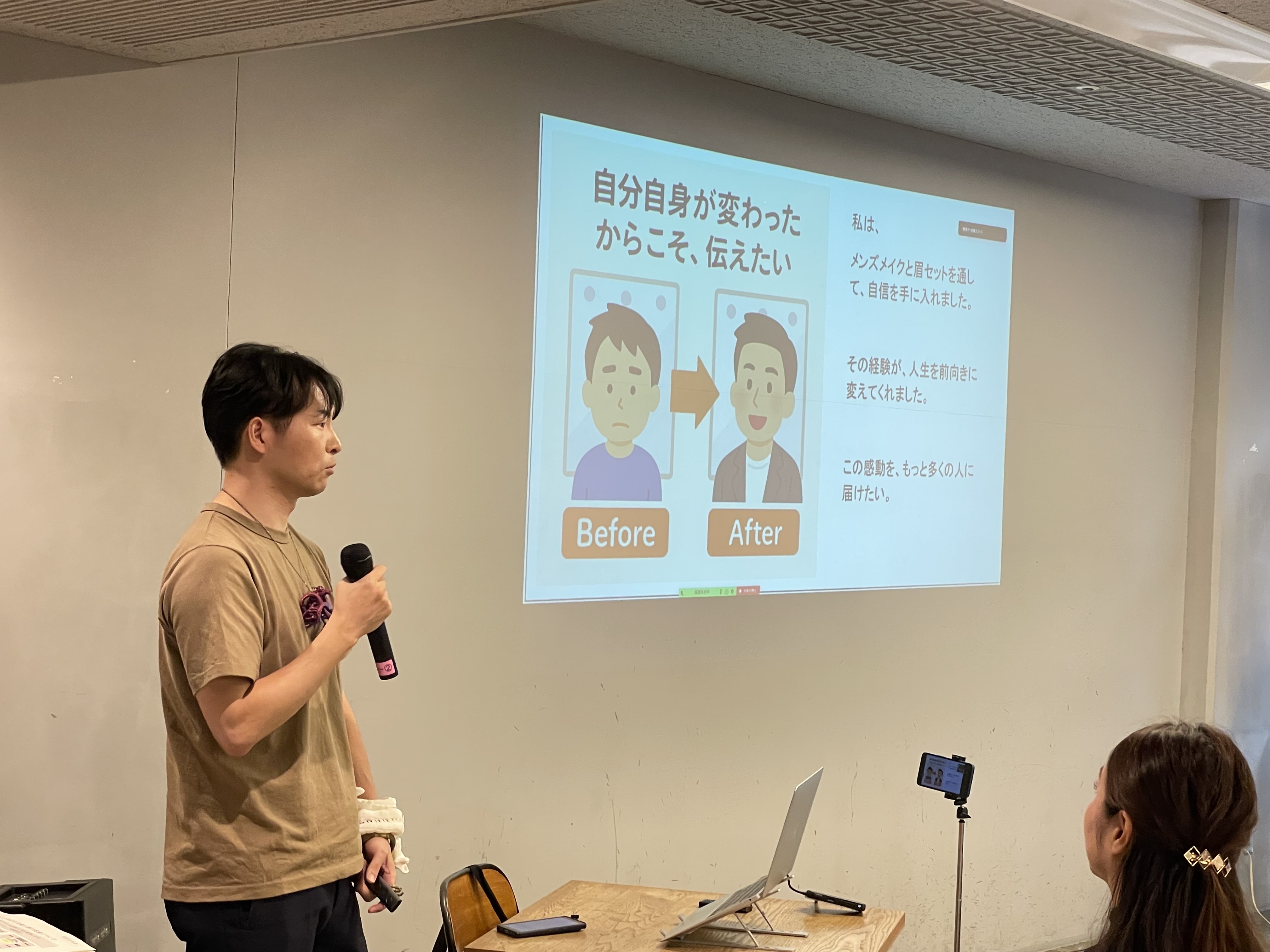 今回は、パーソナルカラー診断サービスを提供されている方やメンズコスメを広めたい個人、事務局のトレジャーフットからコスメ開発についてなど、5組の発表がありました。