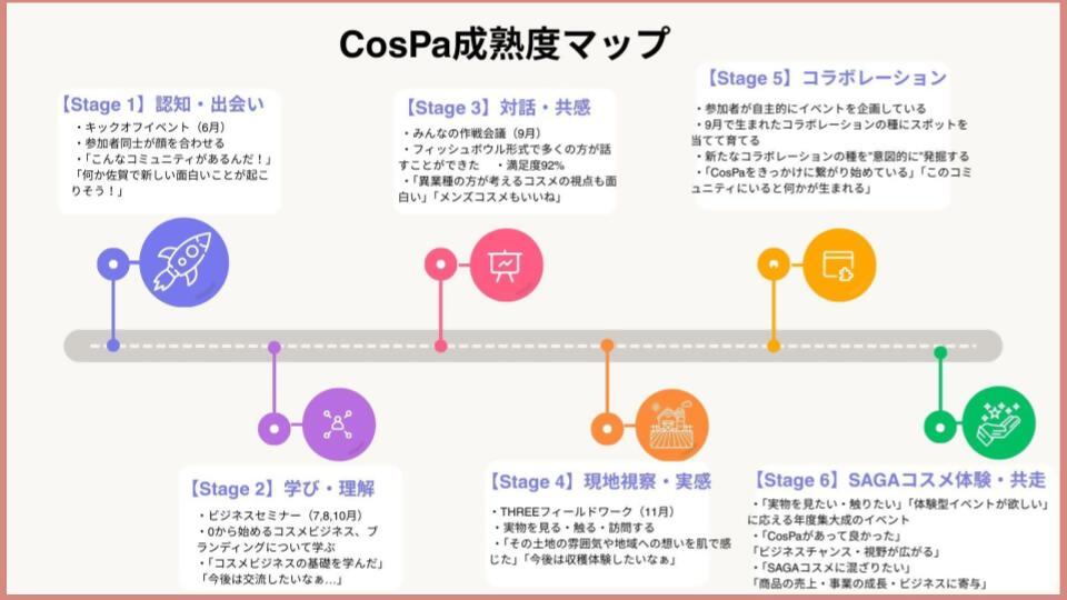 これまでのCosPaの歩みを「CosPa成熟度マップ」を用いて参加者と共有。