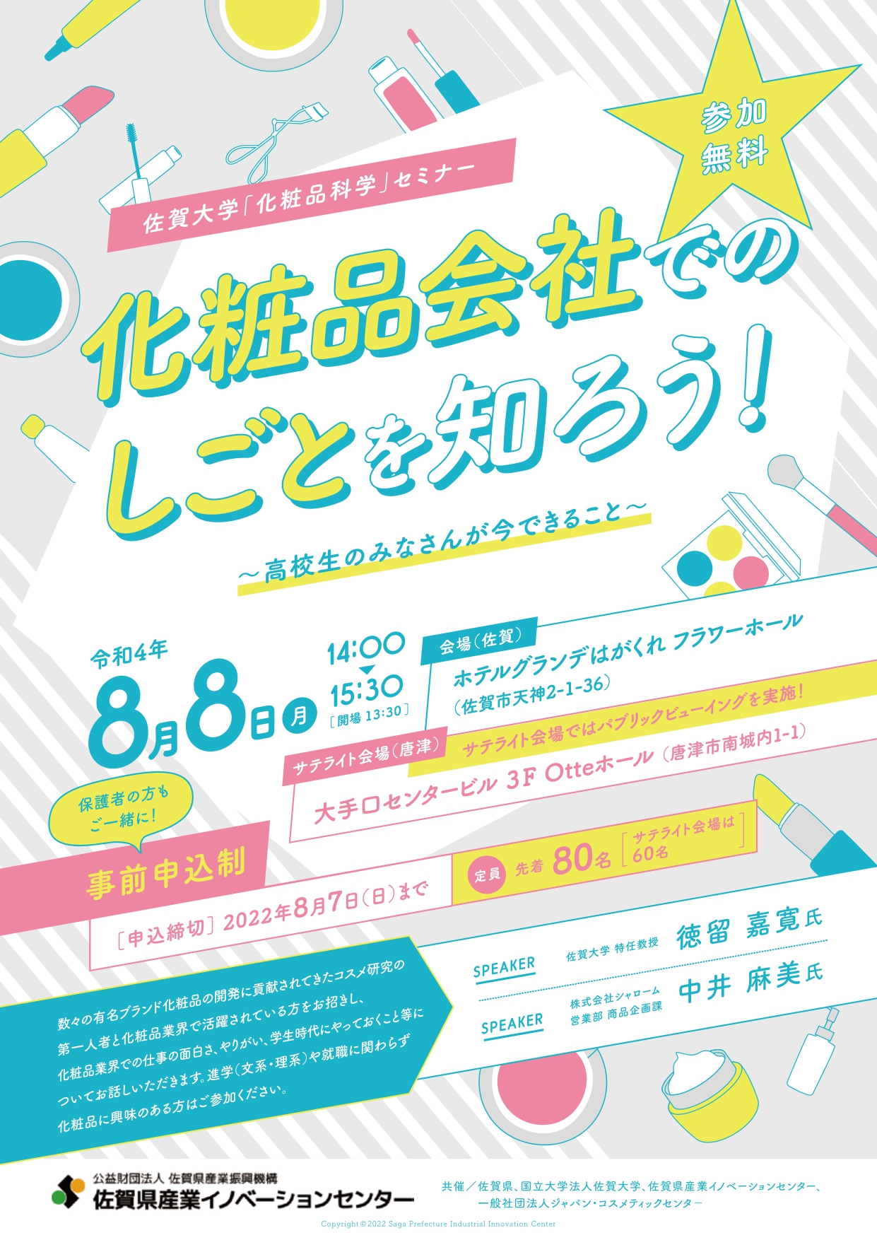数々の有名ブランドで化粧品開発に携わってきたコスメ研究の第一人者から、高校生のみなさんへ。 化粧品業界での仕事のおもしろさや、やりがいをお伝えするセミナーのご案内です。
